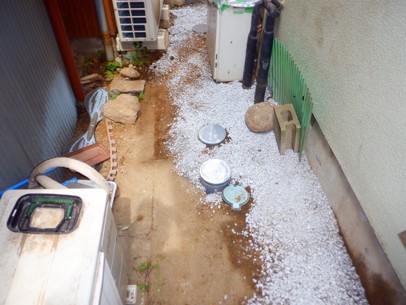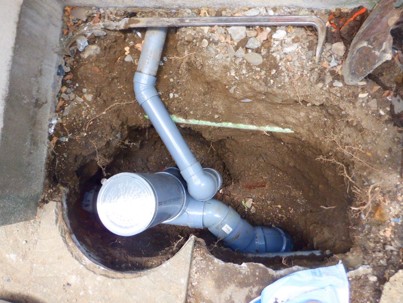 汚水桝からの水漏れが続いたためご依頼いただいた。経年劣化した枡3カ所とドレン等交換した。