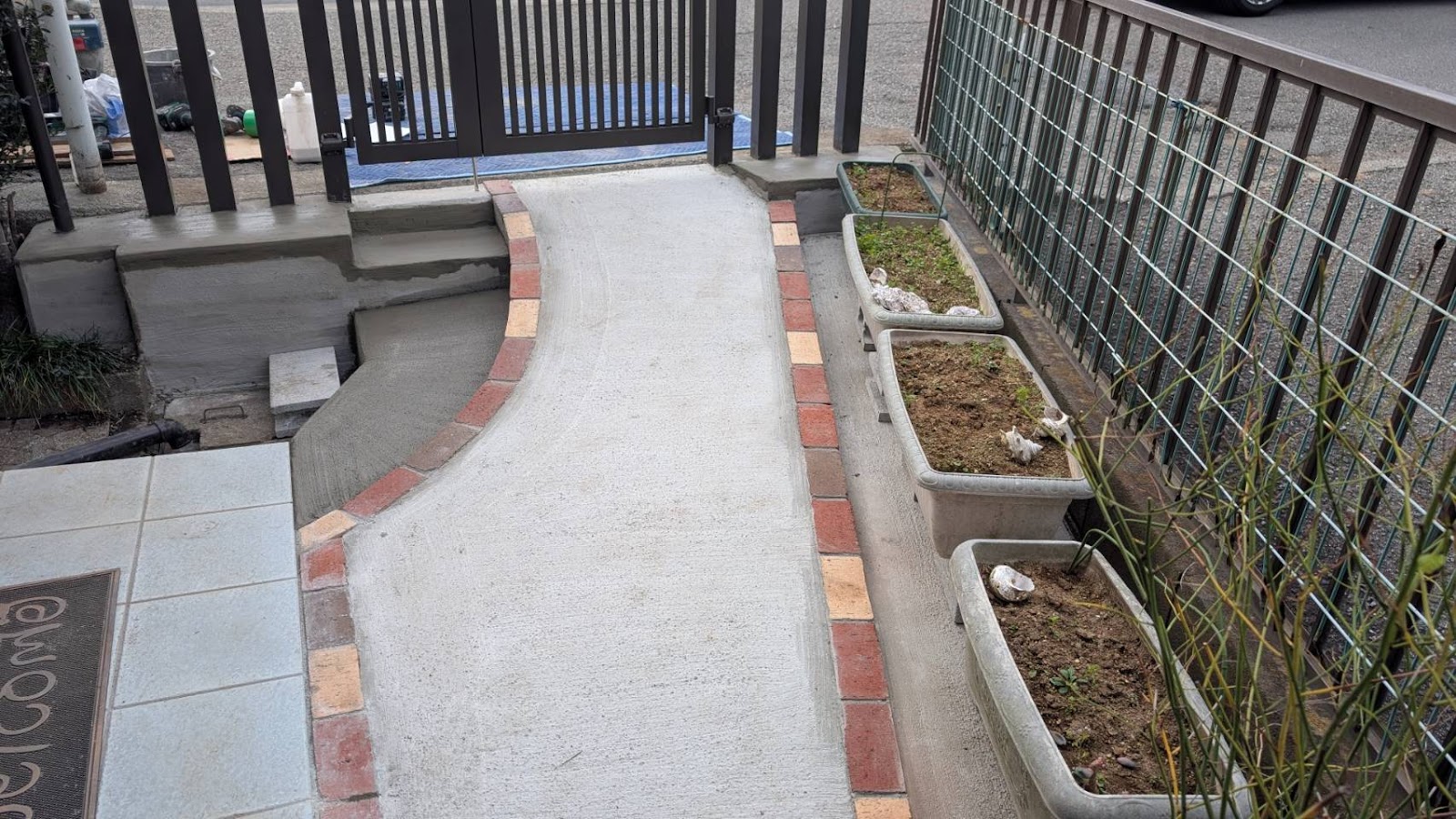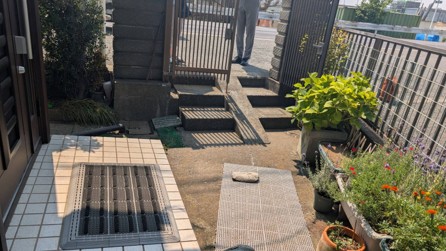 門から玄関までのアプローチを、自転車がスムーズに通れるようにスロープに変更や門扉交換などのご要望。職人の丁寧な作業にご満足いただけました。