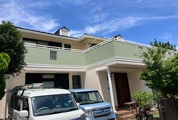 戸建ての外壁塗装事例|ベージュ・グリーン×プレミアムシリコン